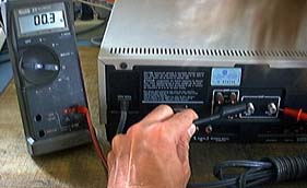 Treat the computer CPU as if it were a VCR, and follow the same testing procedures as above. Here is an example of measuring continuity between the shell of an audio RCA jack and the powerline ground pin: